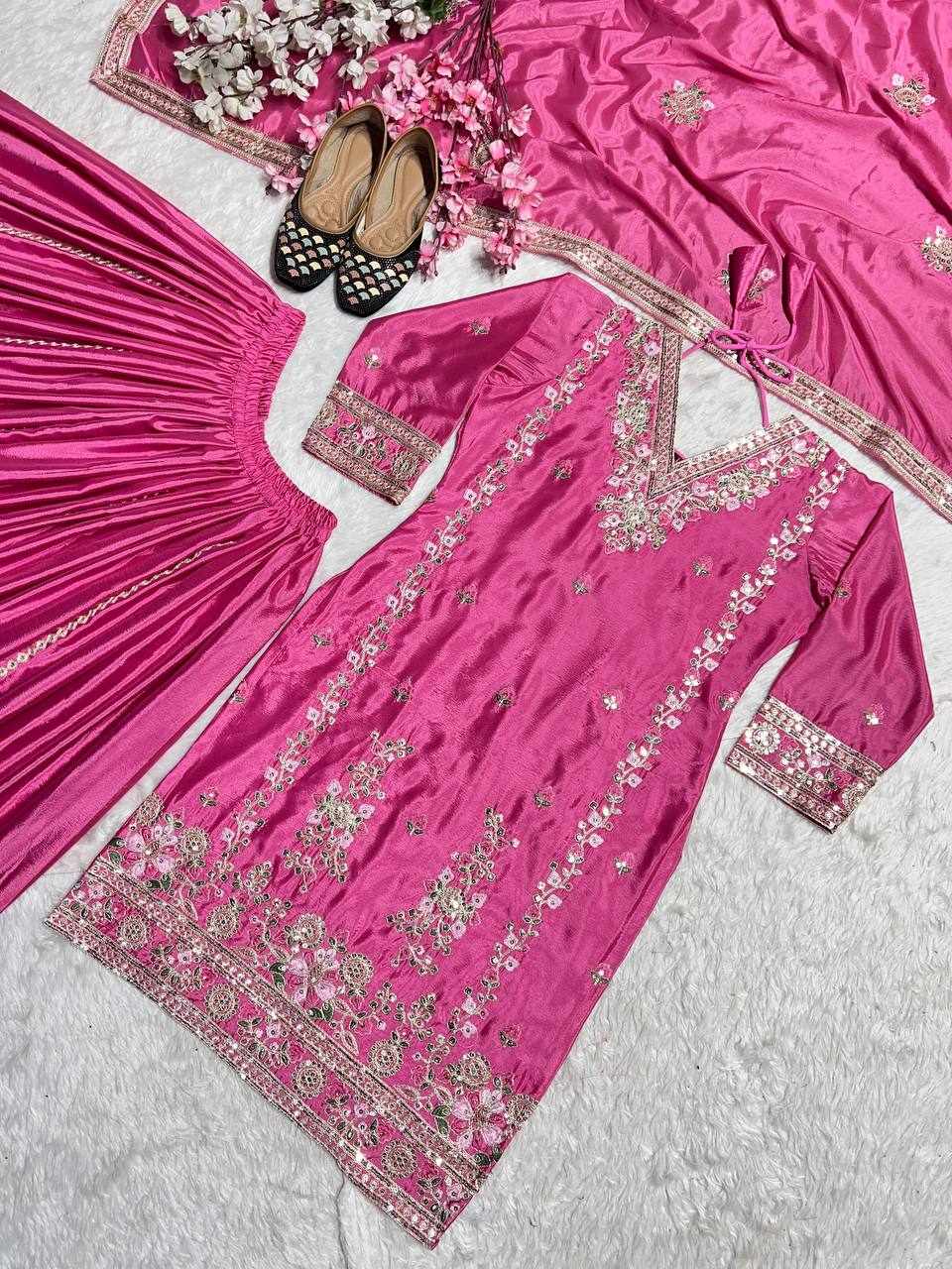 Plazzo Fabric: Pure Heavy Chinnon Silk with Heavy Embroidery Coding Sequence Work (Fully Stitched)
