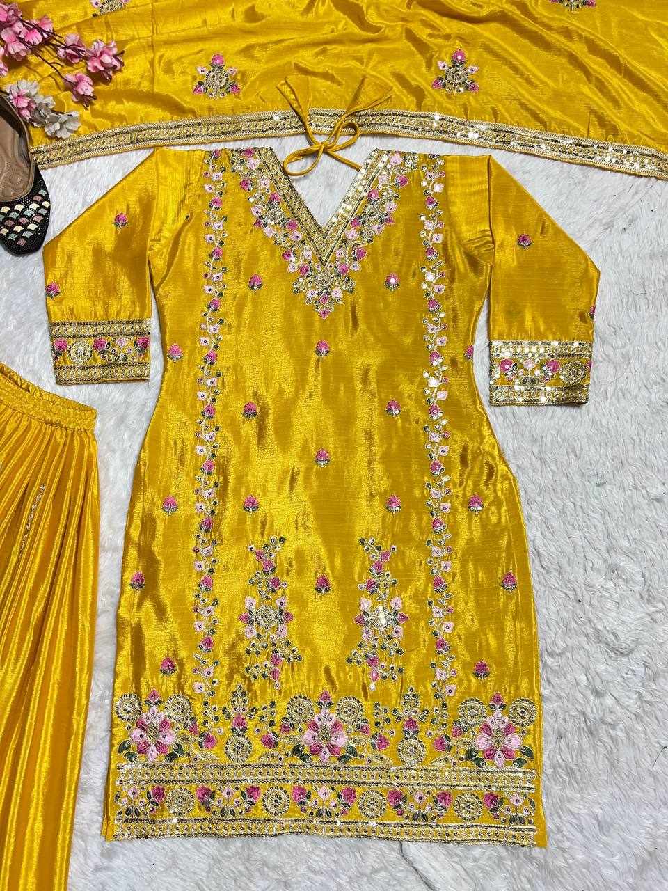 Plazzo Fabric: Pure Heavy Chinnon Silk with Heavy Embroidery Coding Sequence Work (Fully Stitched)