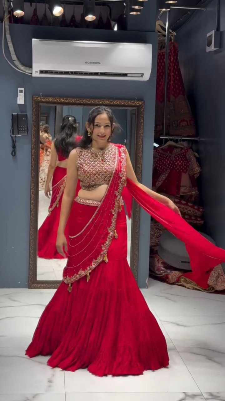 | Name : | QRC 360 Foux Gorgette thread with Sequnce Work Lehengha Saree |