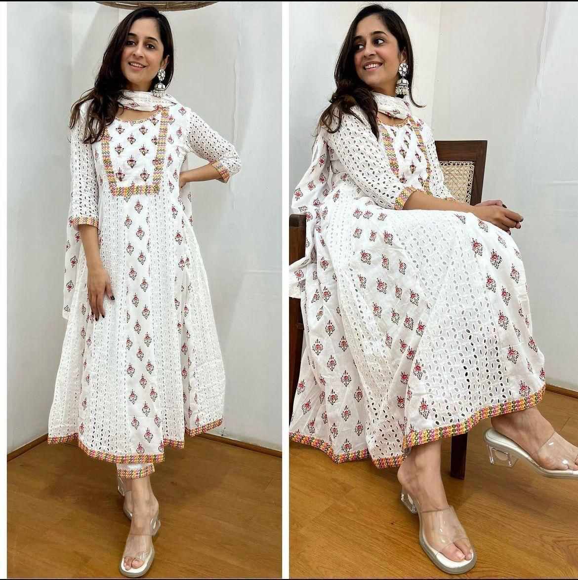 SF 11JUL Anarkali chikankari Kurti with Mirror Embroidery Cotton Dress